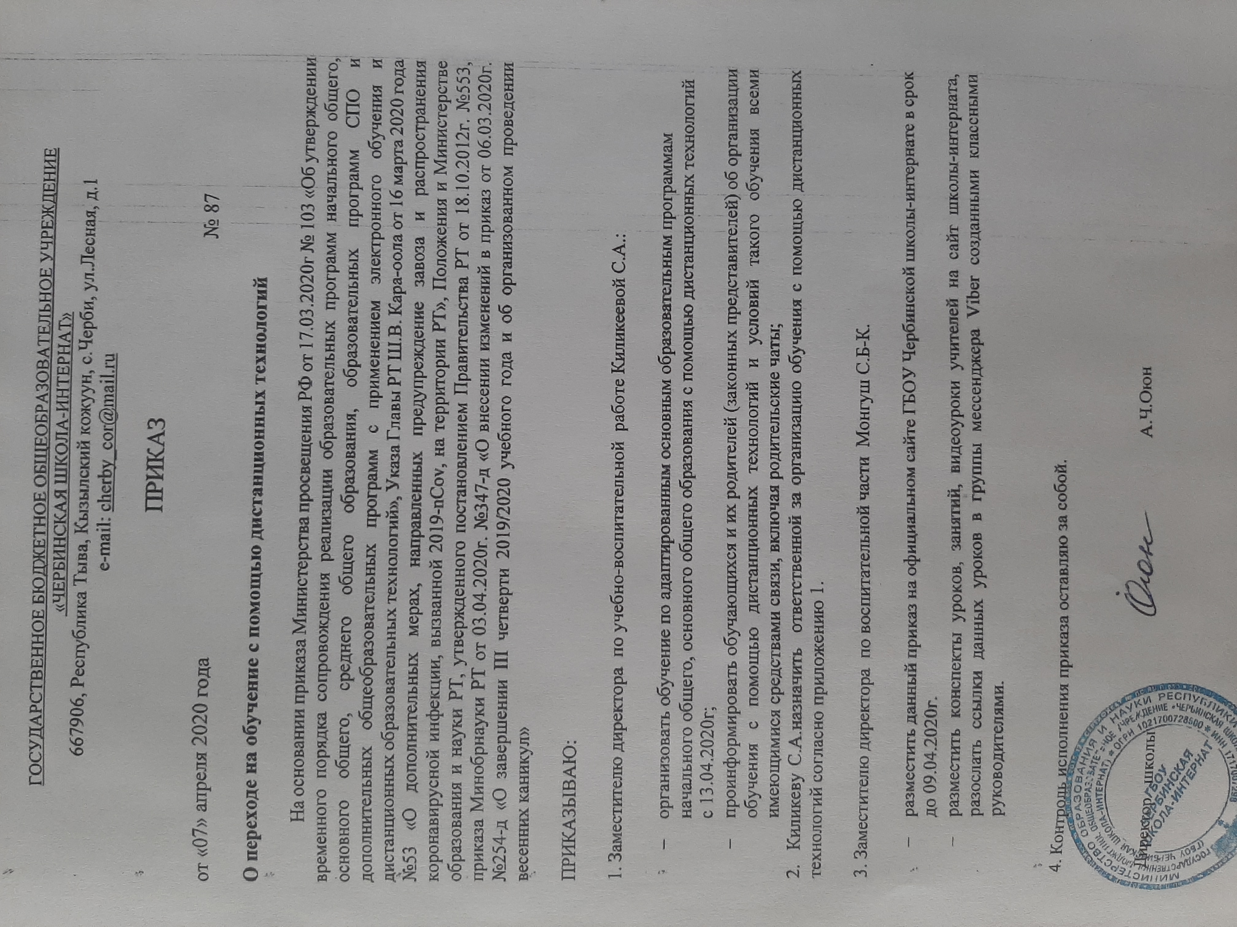 Примерный порядок организации дистанционного обучения в ГБОУ Чербинской школе-интернат для детей с ОВЗСкачать